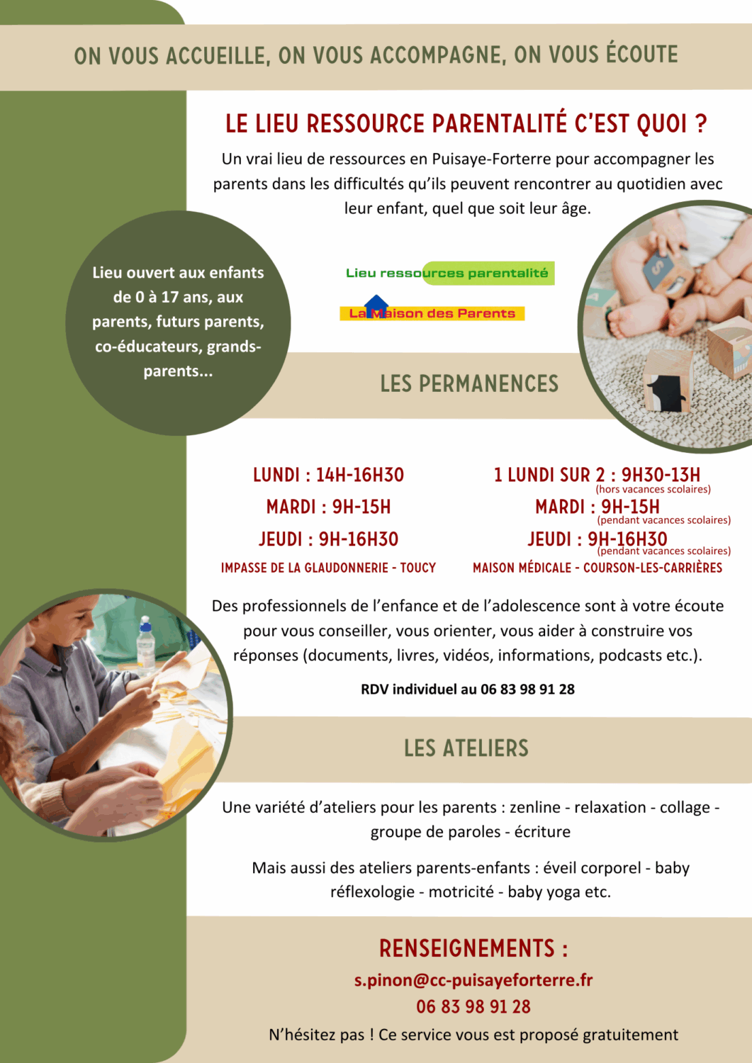 Le lieu ressources parentalité est un véritable lieu de ressources en Puisaye-Forterre pour accompagner les parents dans leur quotidien, leurs difficultés etc.